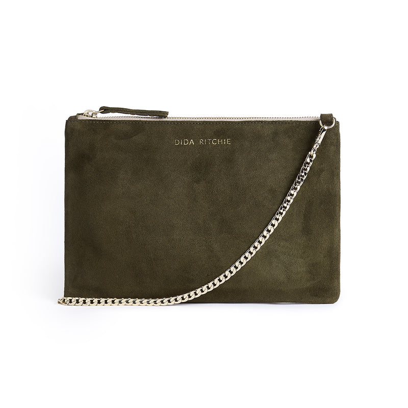 Cara 2.0 - Olive Green Suede Clutch Bag